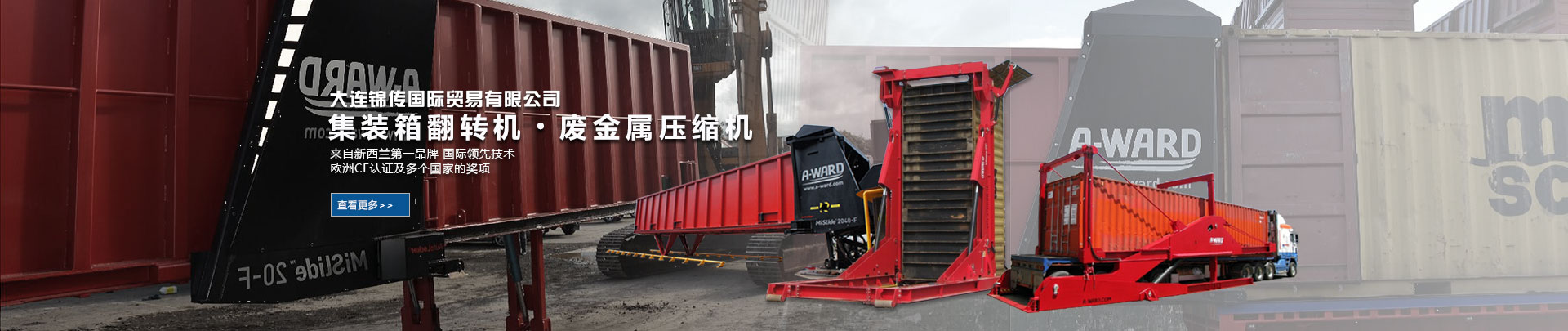 大連錦傳國際貿(mào)易有限公司于2013年11月與新西蘭A Ward公司達(dá)成戰(zhàn)略合作,成功代理集裝箱翻轉(zhuǎn)機、廢金屬壓縮機等產(chǎn)品在中國大陸的銷售、維護及保養(yǎng)業(yè)務(wù)。本公司重合同、守信用,保證產(chǎn)品質(zhì)量,以經(jīng)營多種特色的產(chǎn)品和薄利多銷的原則,贏得了廣大客戶的信任與厚愛。現(xiàn)長期出口產(chǎn)品至澳大利亞,巴西,德國,俄羅斯,哥倫比亞,美國,泰國,羅馬尼亞,新西蘭 ,意大利,越南,印度,印度尼西亞等國家。